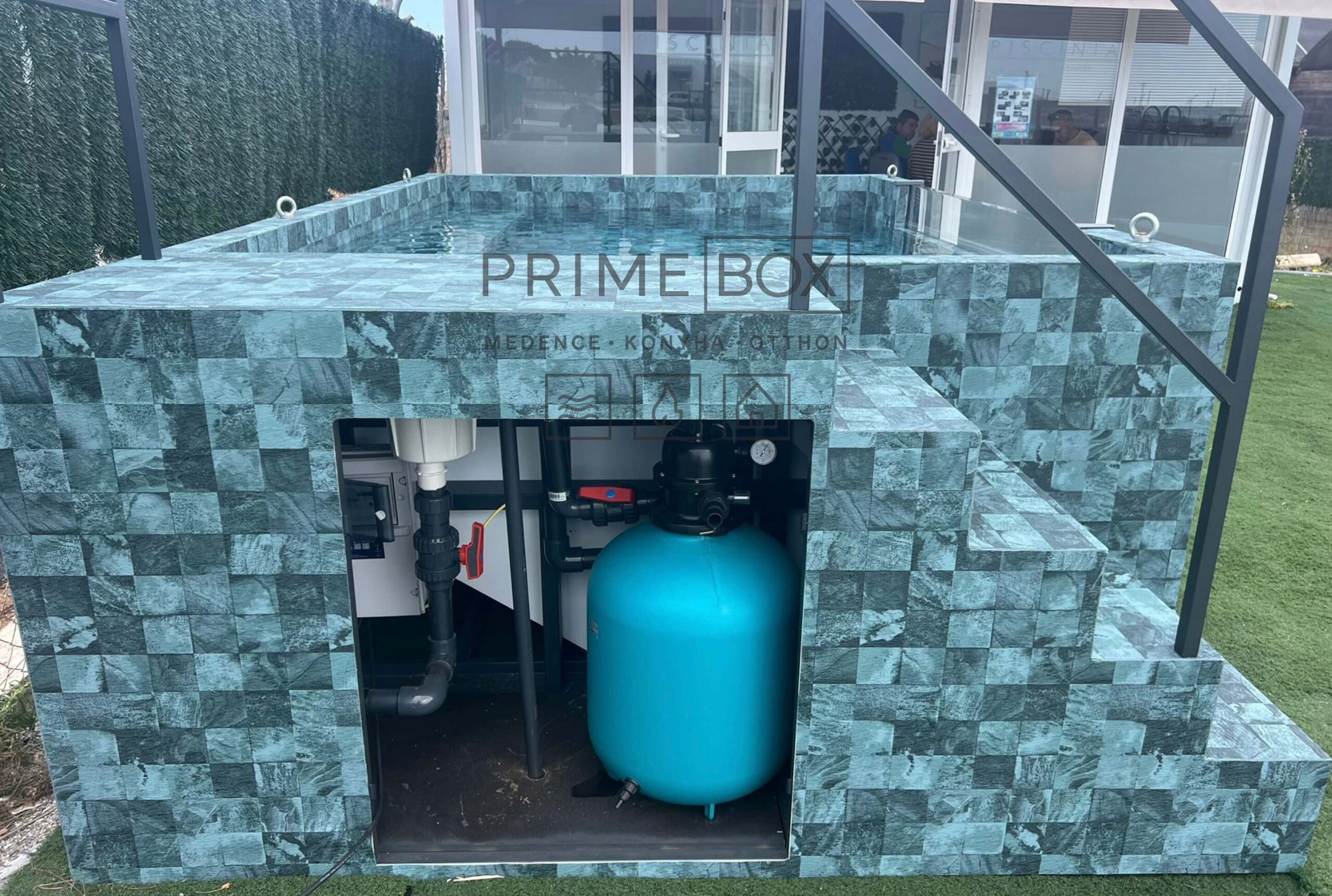 Az Aquabox korszerű szűrő- és fűtési technológiákkal működik. Hőszivattyúval és sóbontóval alacsony üzemeltetési költséget biztosít.